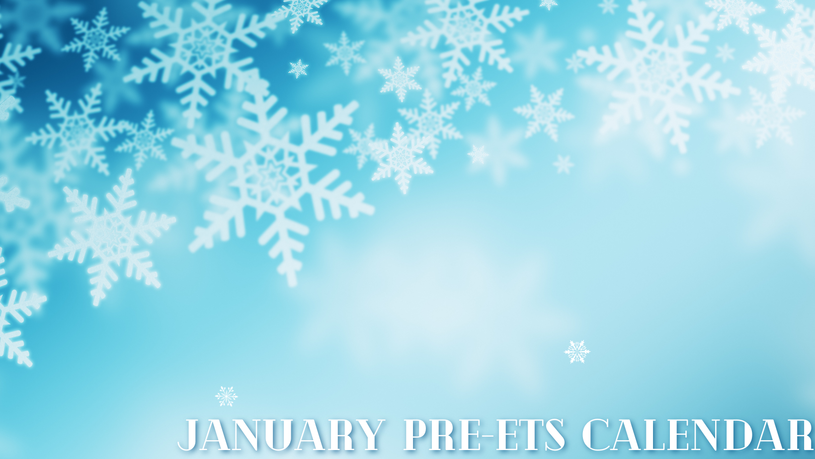 Downloadable PDF of the Pre-ETS December Calendar available here: January Calendar.pdf
