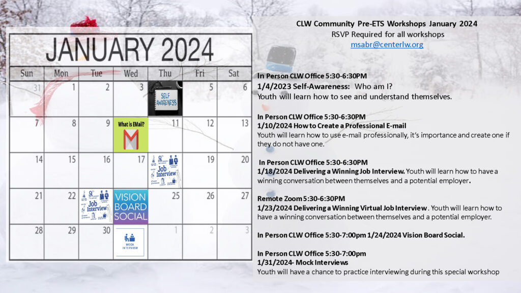 More information about other services Pre-ETS provides can also be found here: Youth – Your Access Advocates (centerlw.org)