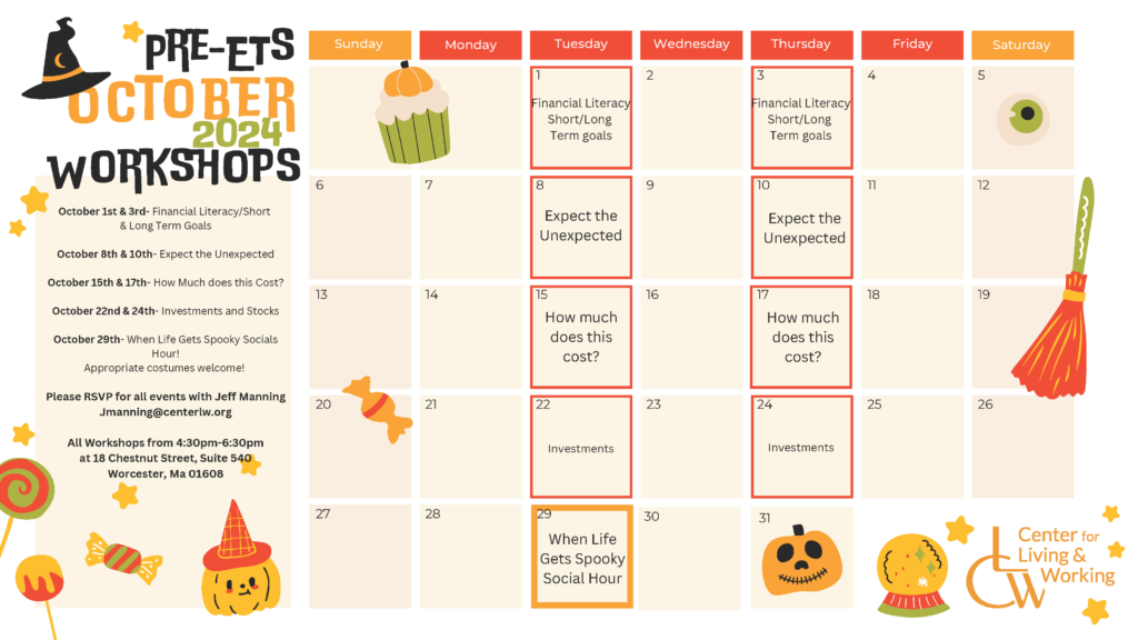 The Pre-ETS October 2024 Calendar is here! All workshops run from 4:30 to 6:30pm
