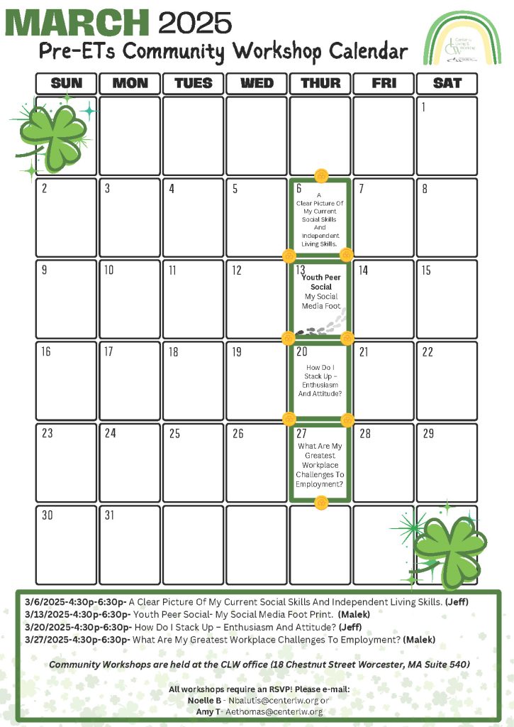 Pre-ETS March 2025 Calendar Workshops