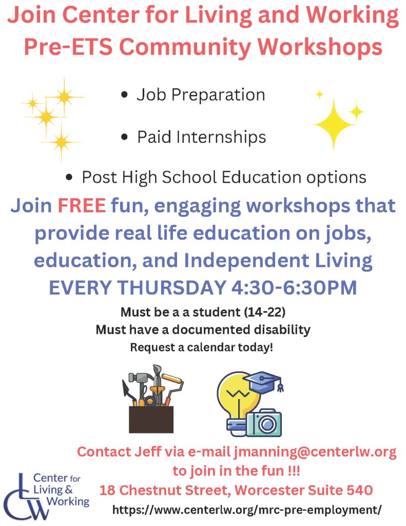 Community Workshops are held at the CLW office (18 Chestnut Street Worcester, MA Suite 540)