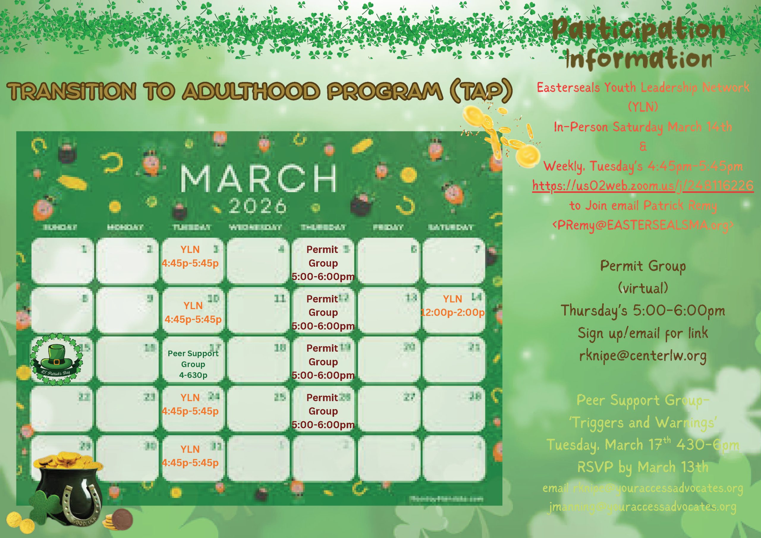 Join us for an exciting month full of workshops and events with the March 2026 TAP Calendar!