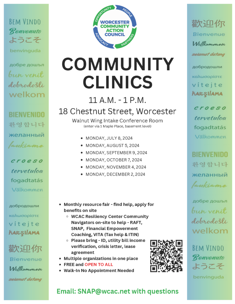 CLW will have a table at the WCAC Community Clinic. Stop by our table and many more for resources available to the community.