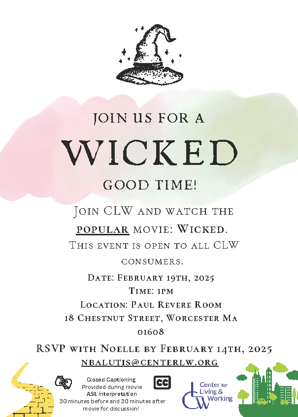 JOIN US FOR A WICKEDGOOD TIME! Join CLW and watch the popular movie: Wicked. This event is open to all CLW consumers Date: February 19th, 2025 Time: 1pm Location: Paul...