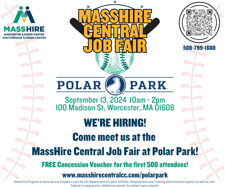 Come by the CLW table at the MassHire Central Job Fair on September 13, 2024 from 10am-2pm at 100 Madison St, Worcester, MA Free Concession Voucher for the first 500...