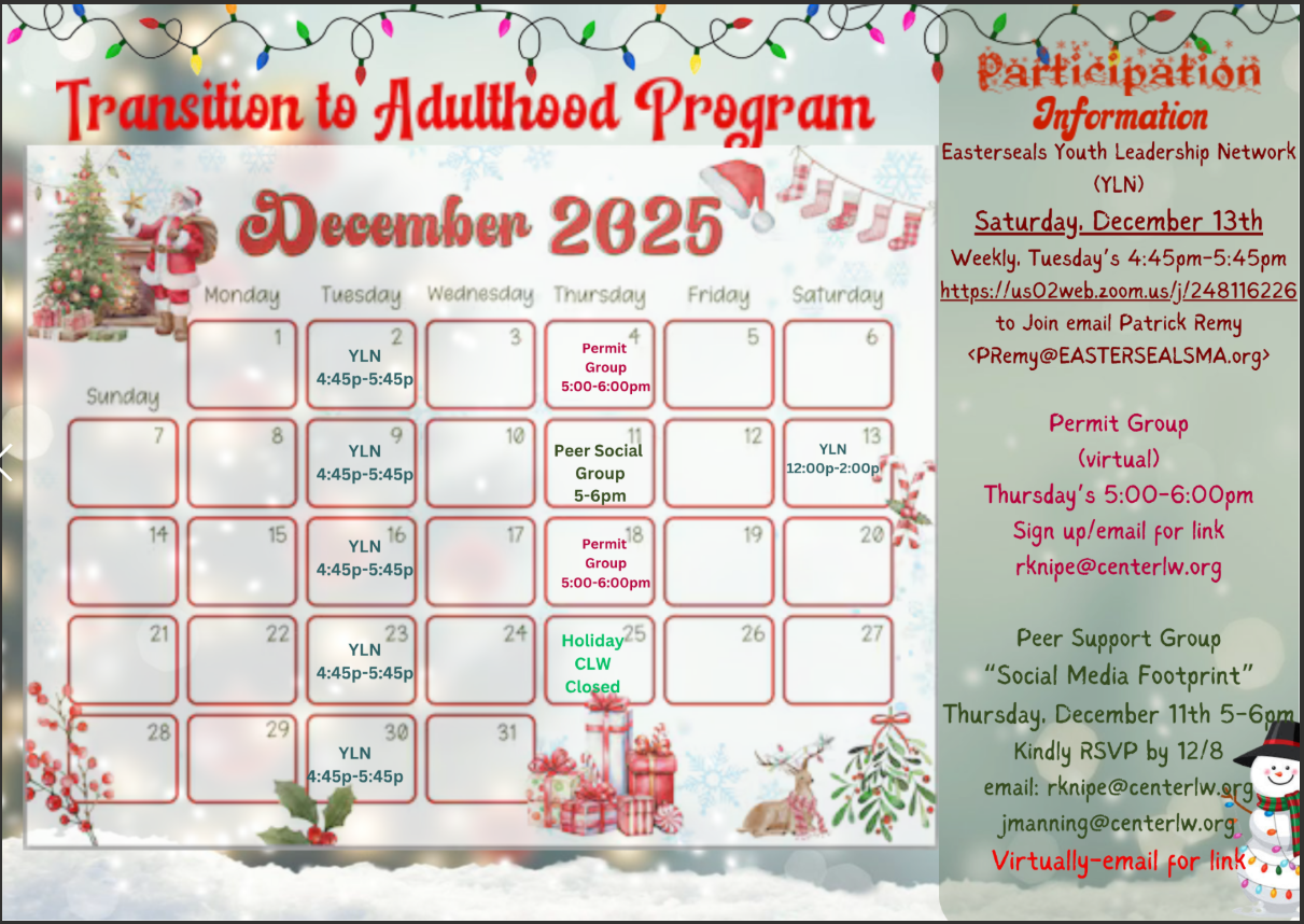 TAP offers social and focused group workshops and networking events to build and sustain social opportunities. For parents, Your Access Advocates partners with Easter Seals of Worcester to host a parent group where professionals discuss pertinent topics and offer assistance to parents navigating the services system.